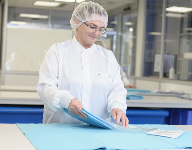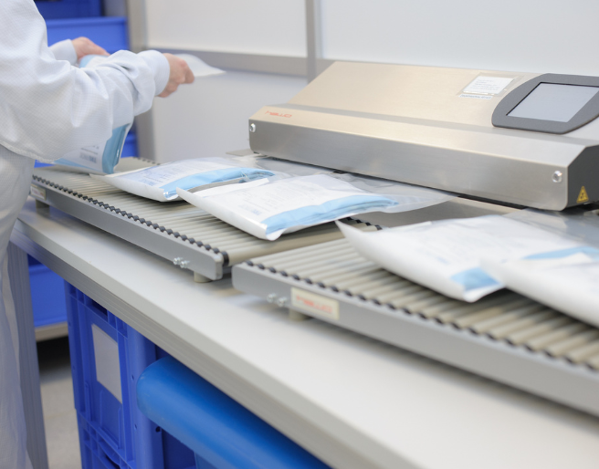 En la fabricación de los productos y el envasado de los sets para cirugía oftálmica damos gran importancia al cumplimiento de las normas de calidad más estrictas. Y, por supuesto, exigimos lo mismo a nuestros proveedores. Los sets TRUPACK® se envasan en una sala limpia en condiciones controladas y con tecnología de última generación. Nuestro personal de producción y envasado están altamente cualificados y, gracias al sistema de rotación de puestos de trabajo, pueden desplegarse de forma flexible en todas las secciones.